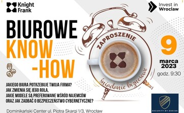 Zapraszamy na śniadanie biznesowe organizowane przez Knight Frank oraz Invest in Wroclaw. Wydarzenie odbędzie się 9 marca o godzinie 9:30 (Dominikański Center, ul. Piotra Skargi 1/3, Wrocław).